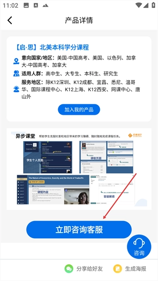 4、点击【立即咨询客服】按钮,即可咨询该课程的具体报名信息。