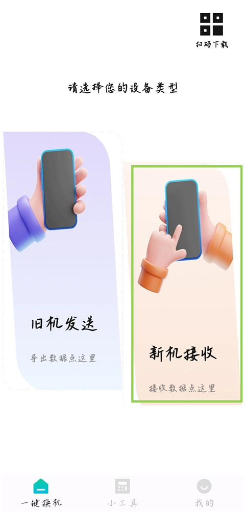 超酷的体验!无论是换机还是传输数据,只需扫描对方手机上的二维码,操作既便捷又时尚。