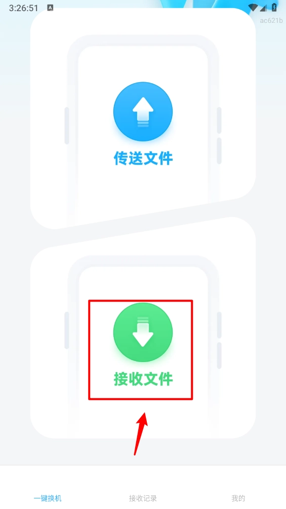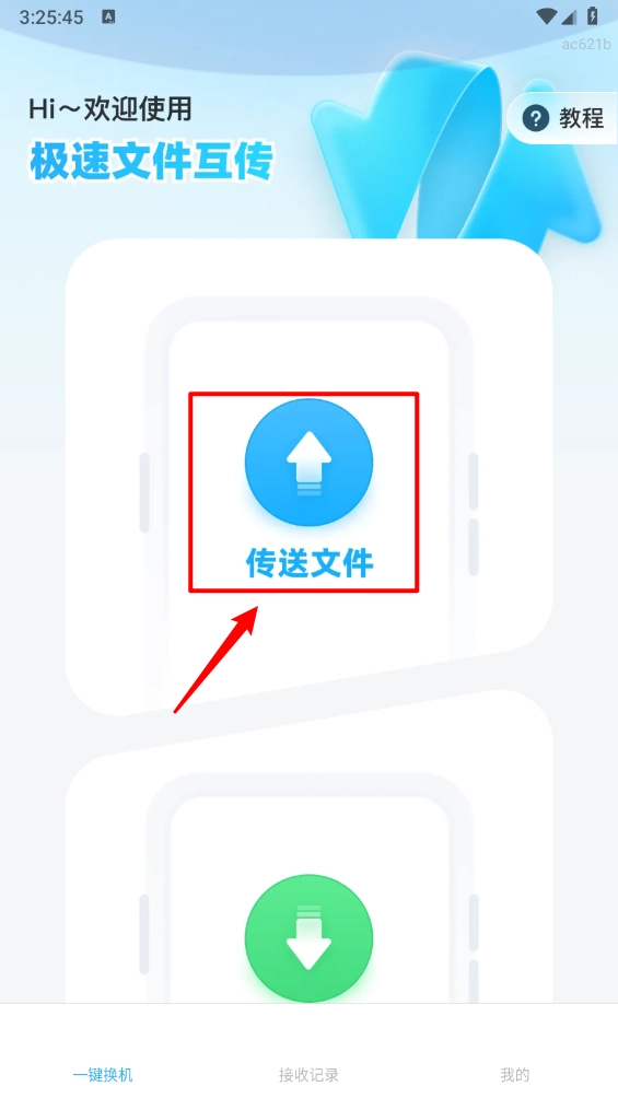 打开“极速文件互传”应用程序,在主界面中点击“接收文件”选项,并允许相关权限的授权请求。
