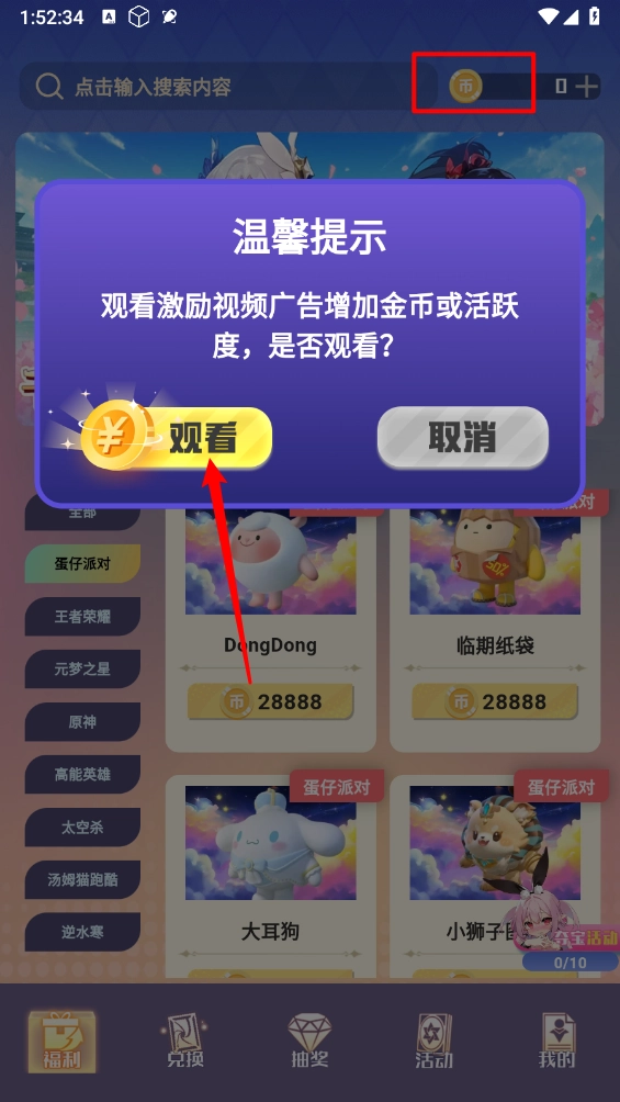 点击右上角的金币图标,会弹出一个弹框,按照提示完成对应的任务即可获取金币。