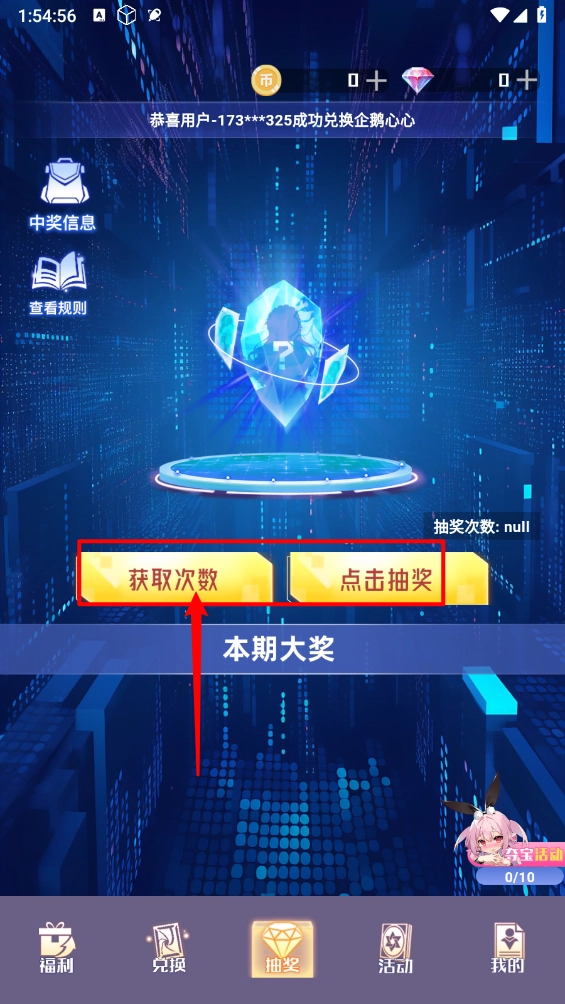 最后还能在“抽奖”板块,只要获取抽奖次数就能参与抽奖。
