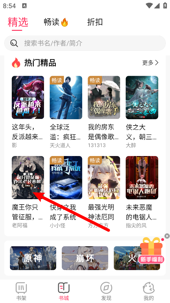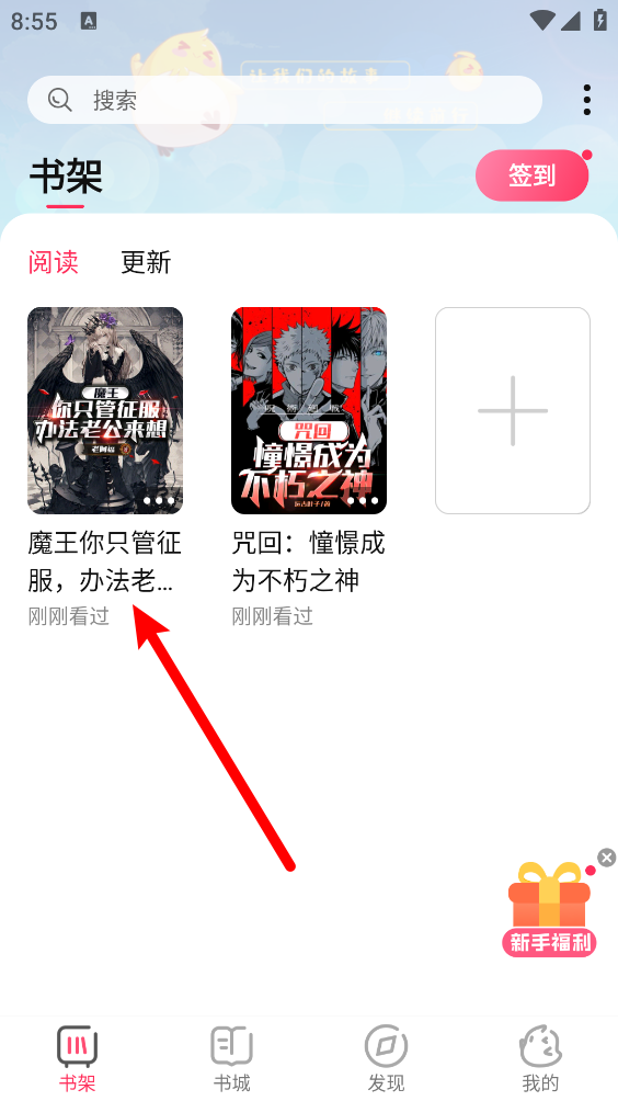 回到主页后,切换到“书架”板块,就能查看对应的小说资源了。