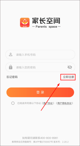 在【注册账号】页面,家长填写电话号码并接收验证码就能完成注册;要是家长已经有账号,就不用走这一步了,直接在首页登录就行。