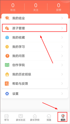 若家长有多个孩子,可在【我的】界面中,点击【孩子管理】-【添加孩子】,输入孩子所在班级的班级码,再次完成入班操作即可。