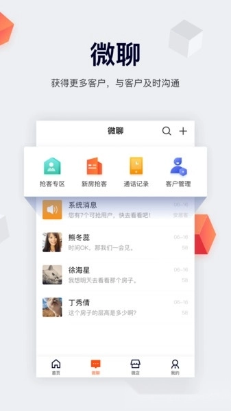 要是你总爱丢三落四,移动经纪人绝对是居家必备的神器,少不得它。就像前几天刚有客户留了电话,你手头有了新房源正打算联系他,结果呢,他的号码被你搞丢了,你居然把号码弄丢了…… 有了移动经纪人App在手,店长再也不用操心客户信息找不着了。一键打开,所有聊天记录都清清楚楚,太赞了!