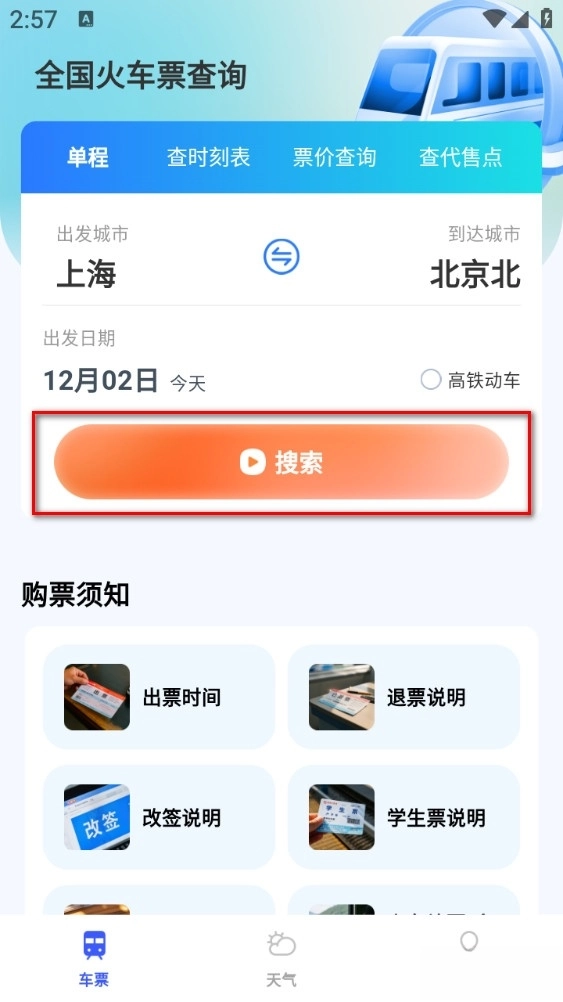 《全国火车票查询》这款软件十分便捷,它为用户带来了一站式的查询体验,能精准获取车票价格、剩余票数、发车时间安排等信息,助力用户的出行更加顺畅。不仅如此,该软件还具备天气查询功能,用户可以随时了解全国各地的天气状况,以便提前做好相应准备。
