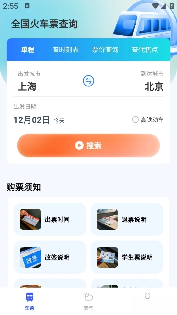 “全国火车票查询”是一款聚焦铁路出行服务的手机应用,致力于为用户带来便捷、高效的购票与行程规划体验。