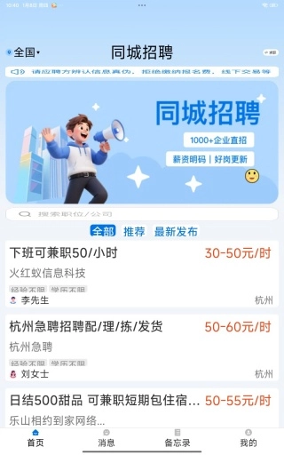 1、用它找同城兼职效率很高,岗位推荐精准,能直接和HR沟通,省去了繁琐流程,很快就把工作敲定了。