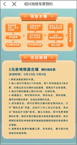 并打开绍兴地铁,登录后点击首页的预约领票按钮。