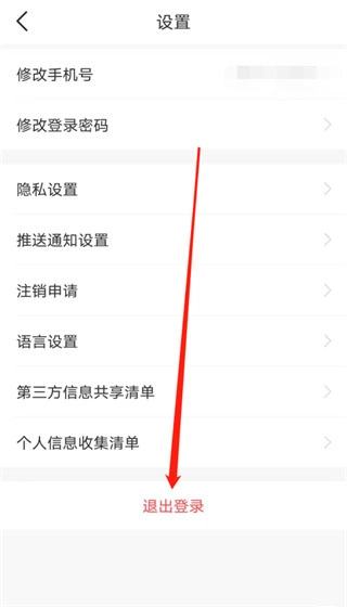 最后点击完成后进入设置页面,我们直接点击页面下方的【退出登录】按钮就可以了。