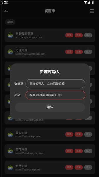 5.输入你的资源库URL和密码,然后点击确认即可