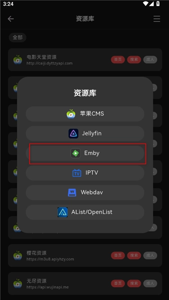 8.这里我们以添加Emby为例,点击Emby