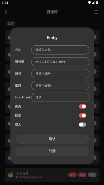 9.输入自己的Emby相关信息然后点击确认