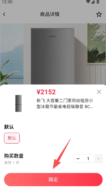 提供商品选购确认功能,在详情页调整数量后点击确定按钮,即可完成商品的选购操作。