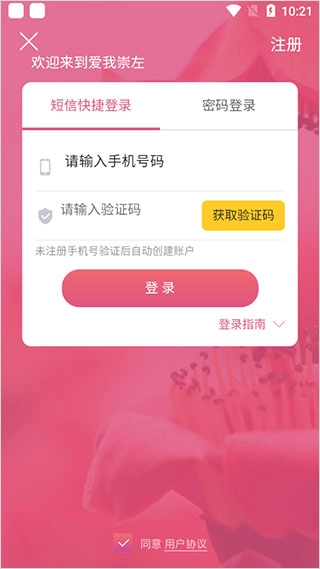 首先输入手机号码,接着填写验证码,然后勾选页面最下方的同意用户协议选项,完成这些操作后点击登录按钮即可。