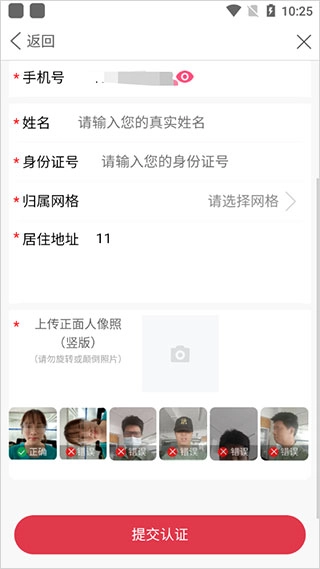 成功登录后开展网格登记工作,依据个人的常住地址挑选对应的网格。