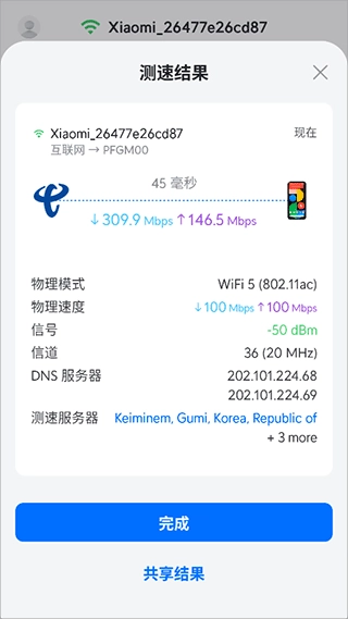 支持分享网速测试结果,方便与他人交流网络情况