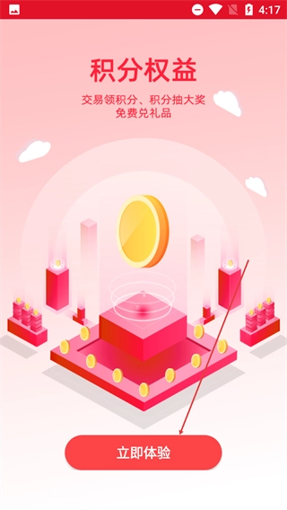 在【积分权益】引导页点击【立即体验】按钮,即可进入应用核心功能界面,参与各类积分相关活动。