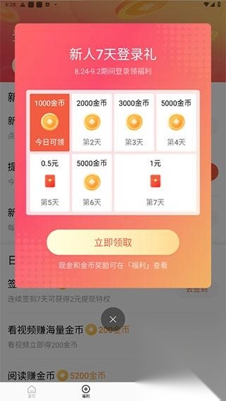 每天观看剧集达到特定时长就能获取金币,积攒到一定数量即可提现,新用户还能享受七天签到的福利。