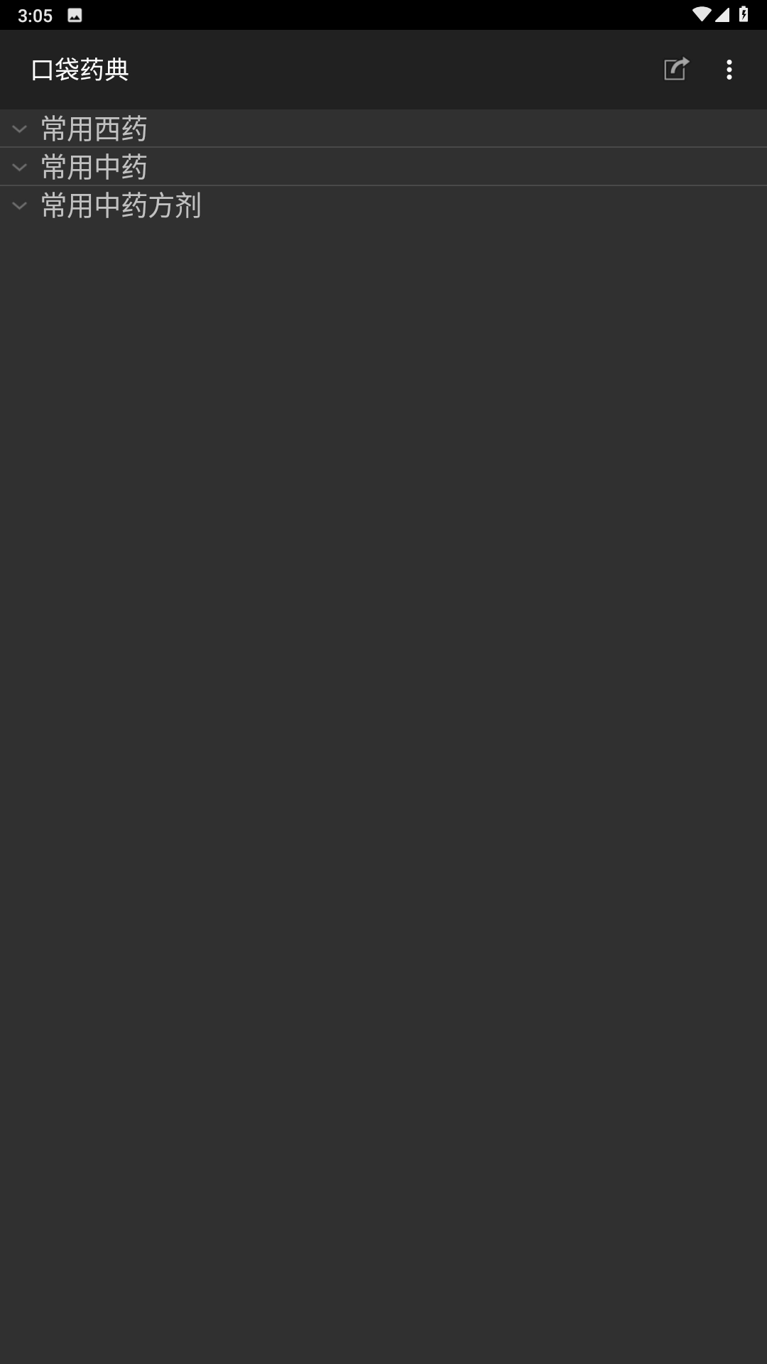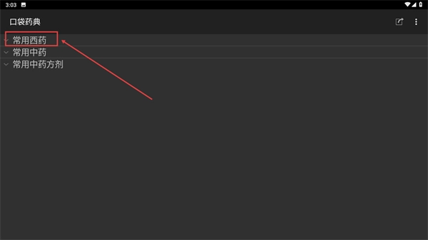 在“口袋药典”的分类列表里,挑选像【常用西药】这样的分类,然后展开与之对应的药物类别选项。