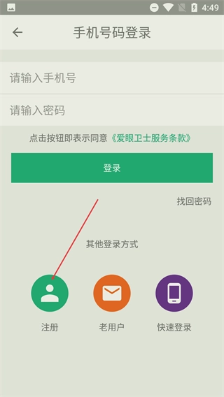 在手机号码登录页面,要是用户是首次使用(即新用户),点击【注册】按钮,就能进入新用户注册的流程。