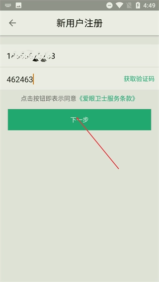 在新用户注册页面,先填写手机号,接着获取并输入验证码,随后点击【下一步】按钮,就能继续推进注册流程。