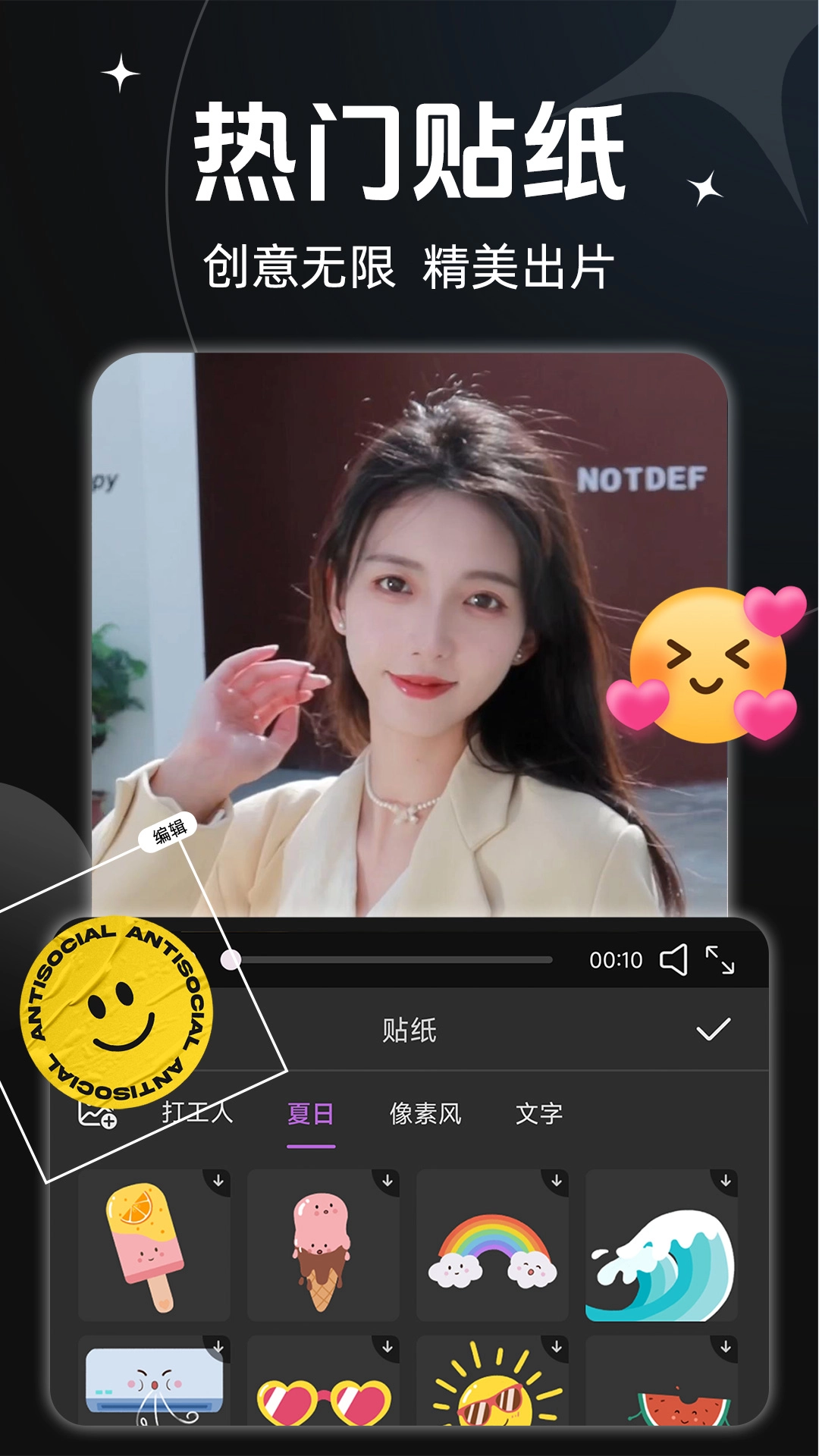 3、所有素材支持一键添加,且添加与编辑均为免费,助力优化视频内容