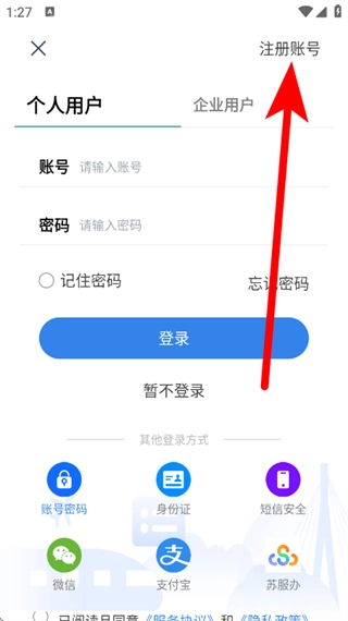 在登录注册界面,点击“注册账号”按钮,即可跳转至个人账号注册页面。