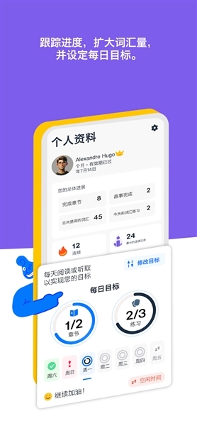 •借助不同难度等级的故事来进行听力与阅读训练,能让人在8个月的时间里迅速且流利地掌握英语。