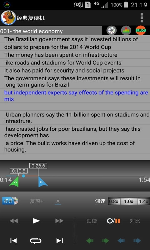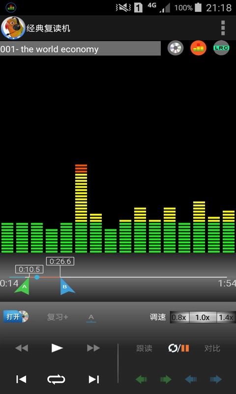 拥有传统磁带复读机所具备的复读、暂停、跟读、变速以及对比等各项功能。