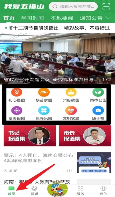 首页整合了政务信息、专题报道以及快捷入口,便于用户迅速知晓五指山的本地动态。