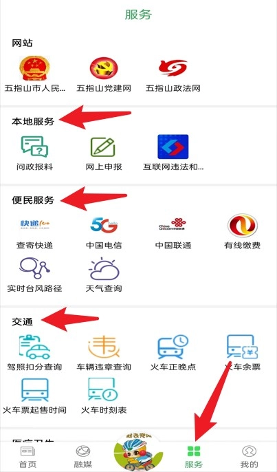 服务界面集成了政务办理、便民服务以及交通信息查询等多种功能,能够有效满足用户在日常事务办理和出行方面的各类需求。