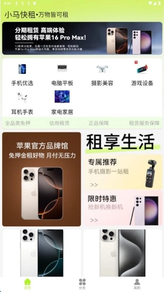 小马快租最新版是一款好物类型超丰富的免押金租赁软件,让我们紧跟潮流,享受数码等优质好物,一键查询,及时了解到租赁产品的详情,知晓租赁单价和周期,按照你的使用需求确定租赁时间,秒速下单,无需等待,而且无需押金。
