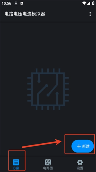 进入电路电压电流模拟器后,在【方案】页面点击“+新建”按钮。