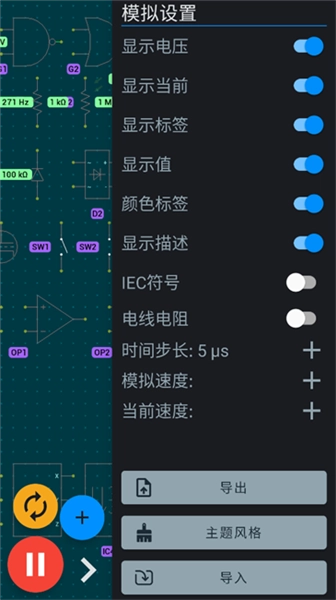 实时模拟功能:此模拟器具备即时反馈机制,能让用户直观观测电路在各类条件下的动态反应,涵盖电压与电流的变动情况。