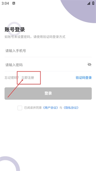 进入账号登录界面,要是还没有注册账号,就点击【立即注册】按钮,这样就能切换到注册流程了。