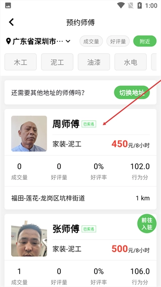 在应用里给客户提供优质的推荐服务,助力他们找到靠谱的专修师傅
