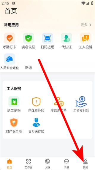 在云筑工匠页面,点击底部我的,进入个人页面。