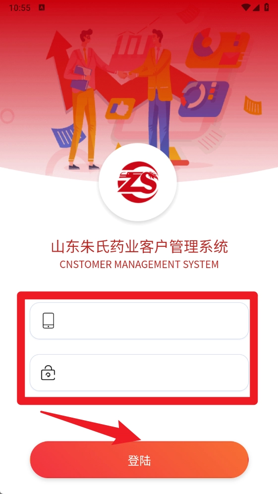 在登录界面输入手机号与密码,点击登录按钮后,就能进入朱氏药业CRM系统,便捷开启智能化办公管理。