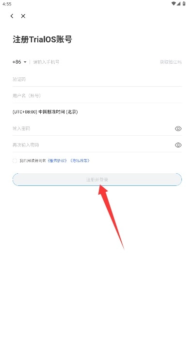 请准确填写手机号码以获取短信验证码,接着设置好用户名与密码,这样就能完成注册并直接登录了。