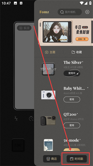 2、打开功能面板后,点击底部的【时间戳】选项,即可进入时间戳的具体设置界面,在这里可以选择自己喜欢的日期样式。