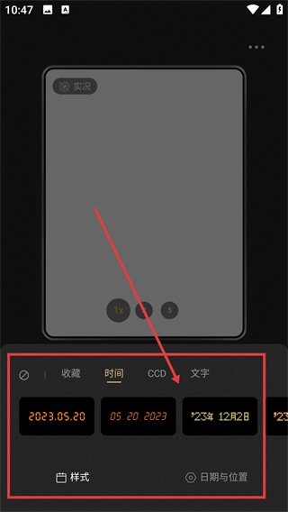 3、在时间戳设置页面可以看到多种日期样式供选择,选定后还能点击【日期与位置】选项来进一步调整相关细节。