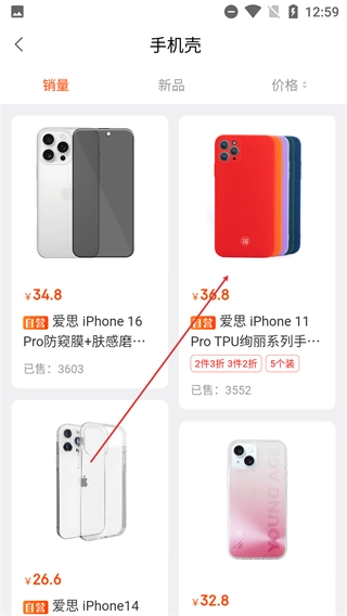 在分类页的【爱思专区】板块中,点击进入【手机壳】分类,就能浏览到相应的手机壳商品列表。