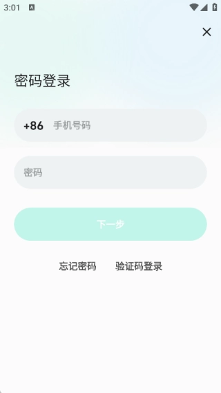 在密码登录界面输入手机号和密码,接着点击下一步按钮完成登录操作。