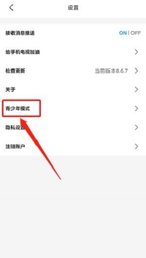 3.点击“青少年模式”选项,即可进入青少年模式的设置界面,具体页面显示如下。