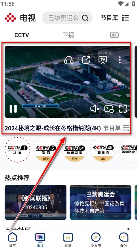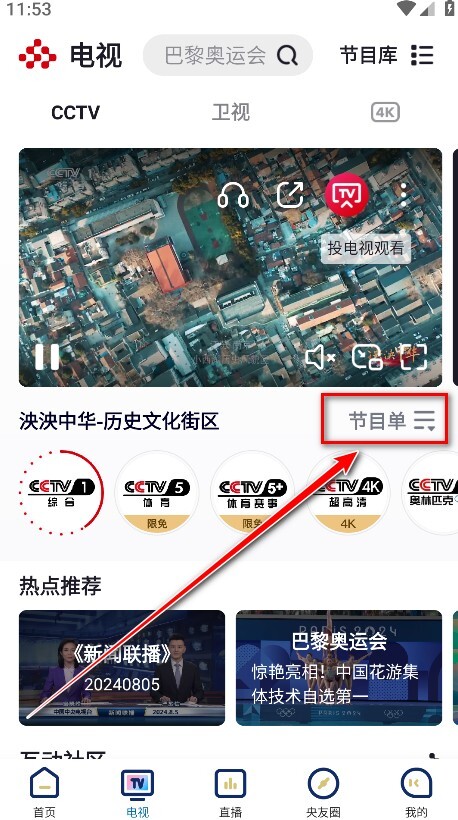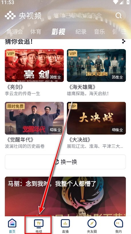 1.打开央视频App,点击电视