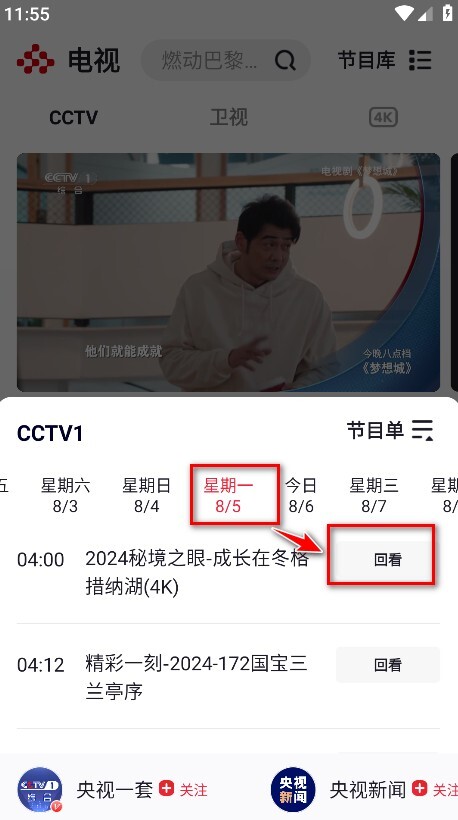 4.如下图所示,就可以回看啦