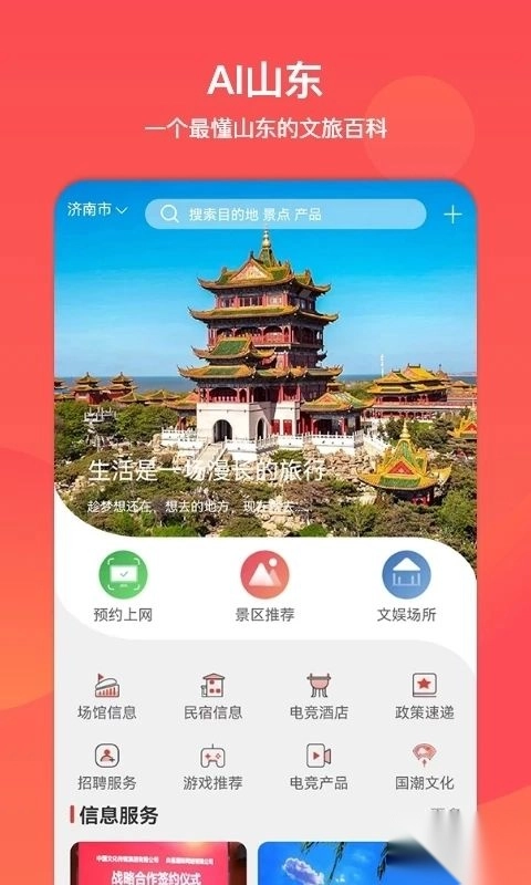 山东省文旅通是一款综合性生活服务应用,主要围绕网吧运营与上网体验展开服务。用户通过它能查找周边营业场所、在线预订座位、完成实名认证,还能获取场所最新动态,借助扫码实现快捷上网。该应用结合人脸比对、证件读取及动态检测技术,精准完成身份查验,有效阻止未成年人或未验证身份人员进入,助力营造健康网络环境。此外,应用内还设有政策快讯、就业信息和景点介绍等板块,方便用户及时了解本地新鲜资讯。山东的朋友们,欢迎来体验!