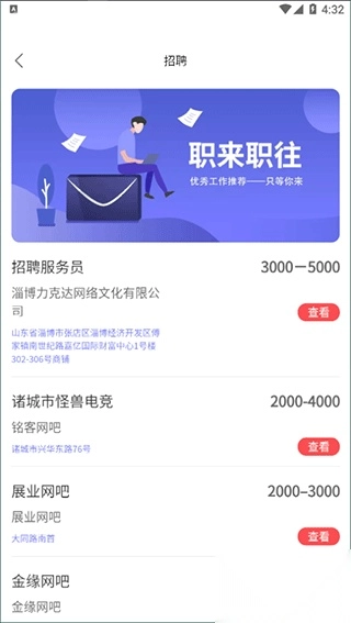 4、程序内同步整合了山东省内的各类新闻动态、政策通知,还有多家营业场所发布的招工信息。