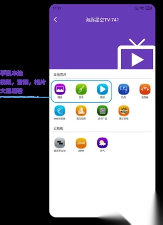 您可以在本地应用列表里,把视频、音频和相片投射到大屏接收端进行观看,还能借助镜像功能让手机屏幕与大屏保持同步显示。